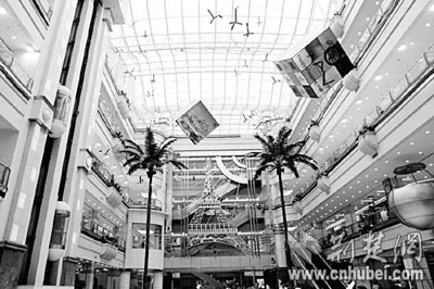 面積大,是武漢銷品茂給人的第一感覺。寬闊的通道,3個綿延的中庭,密集的店鋪一眼望不到邊。一個忙著擺花草的工人說,面積太大了,他前前后后來了七八次,仍稍不注意就會迷路。頗為有趣的是,東路、南街、天橋、內環(huán)等城市常用的路標名詞,在銷品茂內隨處可見。而店方給出的相關數字,更讓人感受到這個商海航母的龐大:1家大型百貨店;1家超市大賣場;3個大型中庭;4條風情摩爾街;6個主題樓面;20多家主題餐廳、咖啡廳;69部電梯;2000個停車位;20萬平方米的建筑面積……