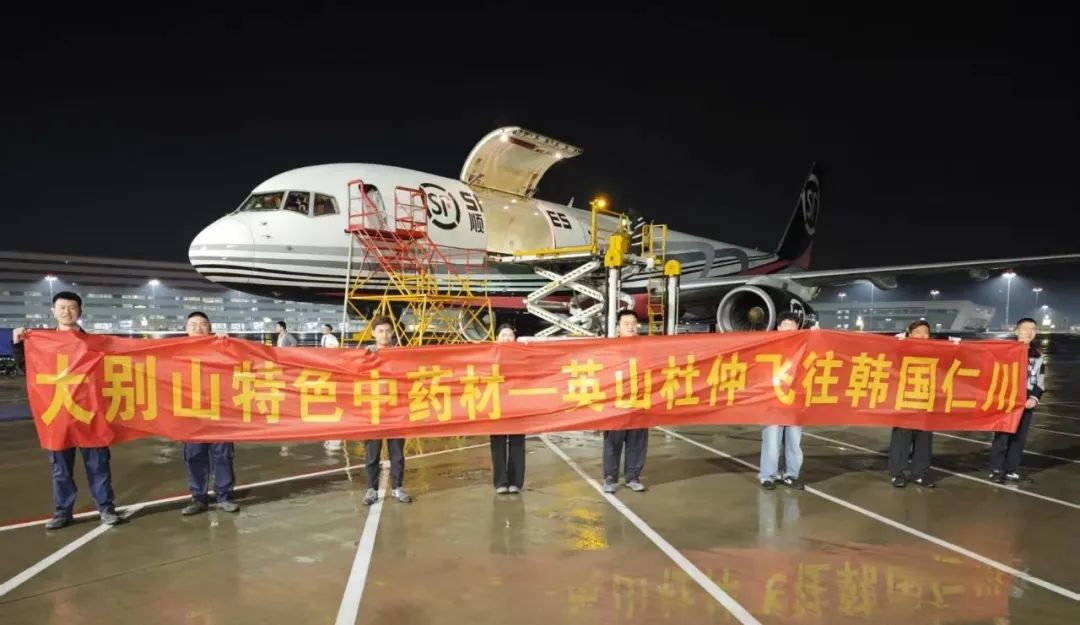 卸貨、稱重、貼標(biāo)、安檢、打板、上車,一氣呵成……5月15日下午,86箱1.37噸英山杜仲,在黃岡城市貨站完成預(yù)報(bào)關(guān)、稱重等流程后,運(yùn)往花湖國際機(jī)場,搭乘次日5時(shí)11分飛往韓國仁川的順豐航空O3141航班,僅3小時(shí)19分后便抵達(dá)目的地。