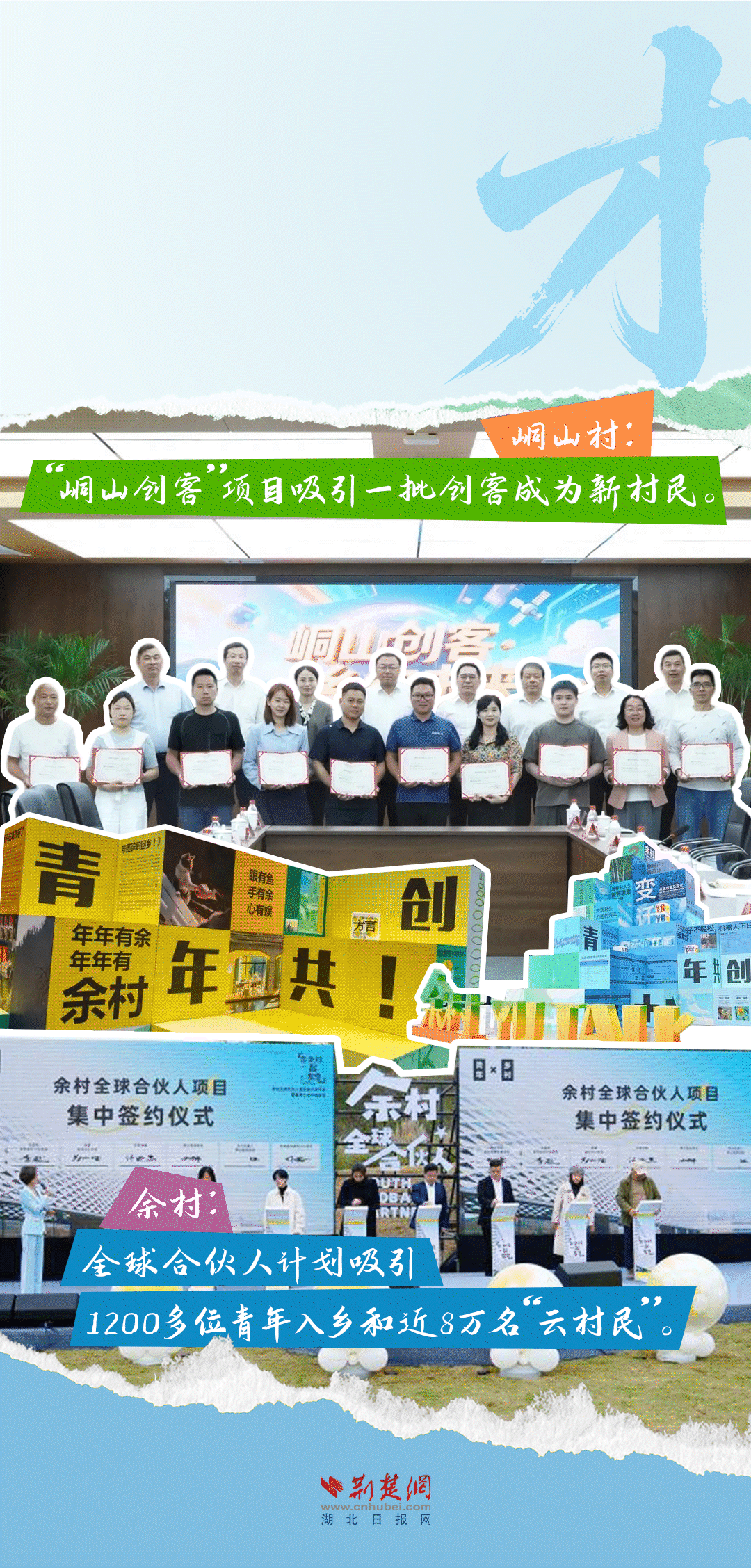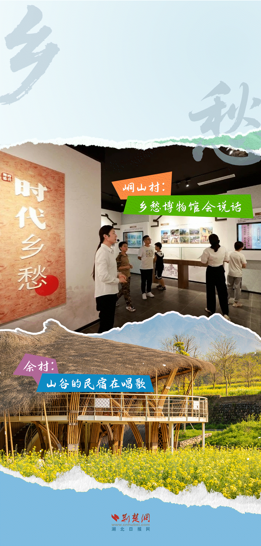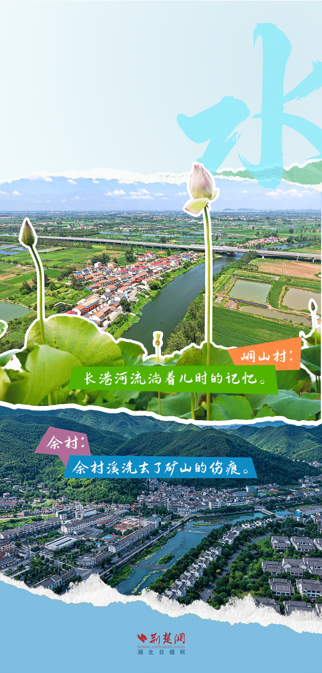 今天,荊楚網(wǎng)(湖北日?qǐng)?bào)網(wǎng))推出創(chuàng)意海報(bào)《留得住綠水青山,記得住美麗鄉(xiāng)愁——湖北峒山村與浙江余村的對(duì)話》,展示中國鄉(xiāng)村的美麗畫卷。