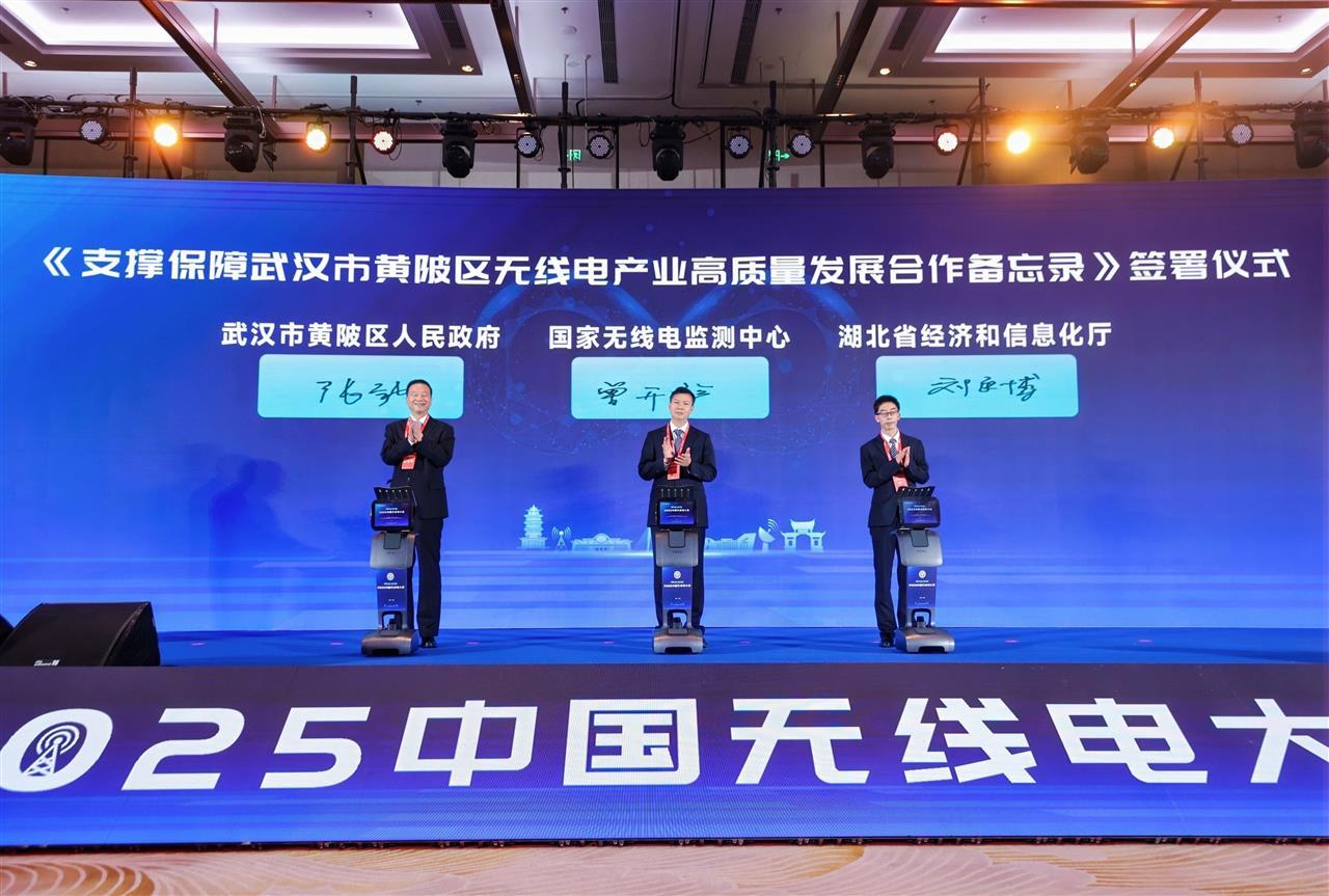 大會(huì)現(xiàn)場(chǎng),國(guó)家無線電監(jiān)測(cè)中心、湖北省經(jīng)濟(jì)和信息化廳與武漢市黃陂區(qū)人民政府共同簽署合作備忘錄,明確將在頻譜資源開發(fā)、監(jiān)管能力提升、低空無人機(jī)協(xié)同管理等方面深化合作,支撐保障黃陂區(qū)創(chuàng)建無線電頻譜資源開發(fā)利用及產(chǎn)業(yè)高地。