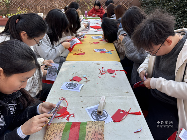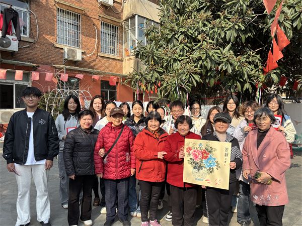 在老師的指導(dǎo)下,老人們手持剪刀,專注地裁剪出形態(tài)各異的花鳥圖案。青年學(xué)生執(zhí)筆作畫,將春日景象描繪于宣紙之上?!昂芫脹](méi)有這樣靜下心來(lái)畫畫了,和年輕人一起創(chuàng)作,感覺自己都年輕了。”參與活動(dòng)的社區(qū)老人李阿姨笑著說(shuō)道。