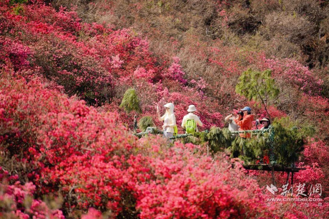 荊楚網(wǎng)(湖北日報網(wǎng))訊(通訊員黃宣)3月21日,2026武漢木蘭云霧山第十七屆杜鵑花嘉年華在黃陂木蘭云霧山景區(qū)啟幕。目前,景區(qū)內(nèi)花宇山、花海等核心賞花點的杜鵑花已進入初放期,漫山紅遍,景色蔚為壯觀。