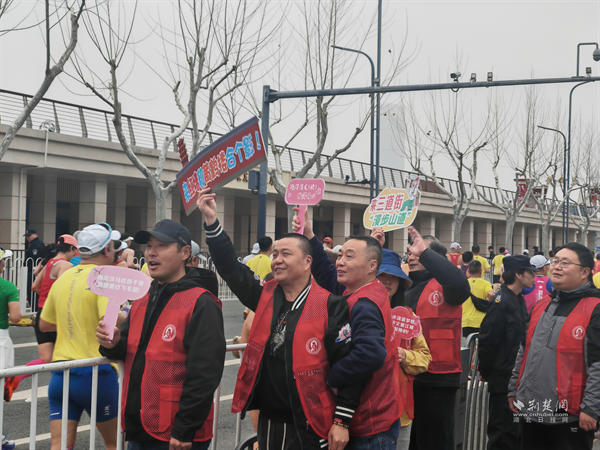 清晨六時,天剛微亮,全體志愿者已身著統(tǒng)一志愿馬甲到崗到位,迅速投入賽前準(zhǔn)備工作。賽事開跑后,各服務(wù)點(diǎn)位的志愿者們分工協(xié)作、忙而有序:一句句“調(diào)整呼吸,保持節(jié)奏”“加油,你是最棒的”的暖心叮囑,讓跑者在奮力奔跑中倍感溫情;賽道兩側(cè),志愿者們結(jié)合街道特色,手持“漢味美食第一巷”“來三道街漫步山道”等定制手舉牌,與彩旗交相輝映,大家齊聲高喊加油口號,激昂的歡呼聲此起彼伏,成為激勵跑者奮勇前行的暖心力量,用最熱烈的方式為每一位跑者鼓勁喝彩。