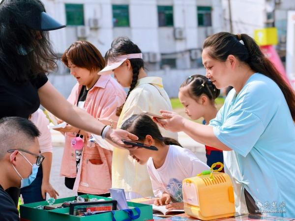 活動(dòng)現(xiàn)場(chǎng),人頭攢動(dòng)、書(shū)香四溢。書(shū)展區(qū)精選經(jīng)典獲獎(jiǎng)繪本、熱門(mén)少兒文學(xué)、趣味科普讀物等多元品類(lèi),滿(mǎn)足不同年齡層讀者的閱讀需求?,F(xiàn)場(chǎng)特設(shè)武昌歷史文化叢書(shū)閱讀體驗(yàn)區(qū),市民從書(shū)頁(yè)中走進(jìn)武昌1800年建城史,感受鮮活的人物故事、風(fēng)物地標(biāo)與民俗煙火。八卦井前,黨員志愿者謝邦純?yōu)榇蠹抑v述明楚王府遺址之一——“八卦井”的前世今生,帶領(lǐng)市民穿越時(shí)空,感受歷史的厚重與溫度。