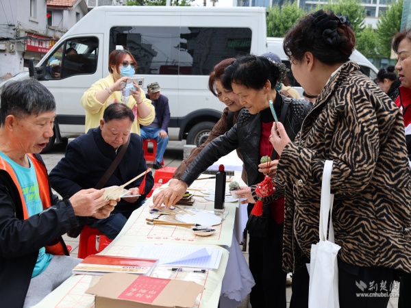 “文潤(rùn)江城”知識(shí)問(wèn)答區(qū),居民們抽取百姓大舞臺(tái)功能、新時(shí)代文明實(shí)踐站服務(wù)、黃鶴樓古詩(shī)詞相關(guān)題目,答對(duì)即可領(lǐng)取一盆綠植。九州上醫(yī)館設(shè)置的養(yǎng)生茶飲品鑒與香囊DIY專(zhuān)區(qū),居民們親手制作草藥香囊,品味養(yǎng)生茶飲。非遺文化體驗(yàn)站設(shè)置活字印刷術(shù)、詩(shī)詞團(tuán)扇等體驗(yàn)攤位,大人孩子齊上陣,在團(tuán)扇上寫(xiě)下喜愛(ài)的詩(shī)詞,體驗(yàn)古老印刷術(shù)的奧妙。
