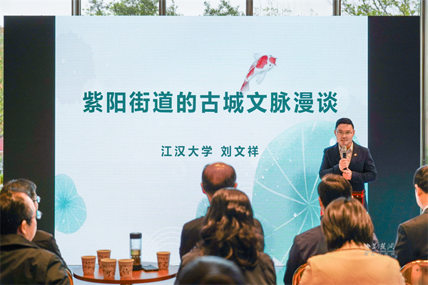 活動在武漢市文物考古所考古隊(duì)工作人員圍繞武船廠區(qū)遺址的發(fā)掘?qū)嵺`分享中拉開帷幕?!袄铣情T下尋根文脈”的探訪讓委員們和活動嘉賓深刻認(rèn)識到需以敬畏之心對待歷史、以科學(xué)之策守護(hù)遺產(chǎn)、以創(chuàng)新之道轉(zhuǎn)化資源。隨后的“萬千城象中預(yù)見未來”環(huán)節(jié),各位委員和嘉賓結(jié)合自身所長進(jìn)行分享。九三學(xué)社江漢大學(xué)委員會副主委劉文祥從武當(dāng)之巔的“紫陽造”和紫陽之名由來解讀紫陽文脈。湖北廣播電視臺高級記者盧綱、區(qū)人大代表韓文亮分別就武昌灣歷史文化資源活化利用、環(huán)紫陽湖片區(qū)的IP打造進(jìn)行交流發(fā)言。青年企業(yè)家代表章崴、王思宇則立足企業(yè)發(fā)展與區(qū)域建設(shè)同頻共振的視角,分享作為文化企業(yè)如何在打造武昌特色的文化IP與豐富文創(chuàng)業(yè)態(tài)中發(fā)揮作用。