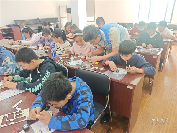 青少年認(rèn)真組裝機(jī)器人模型。 通訊員供圖